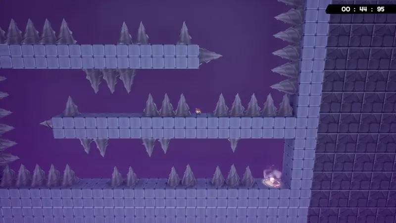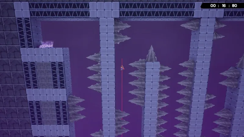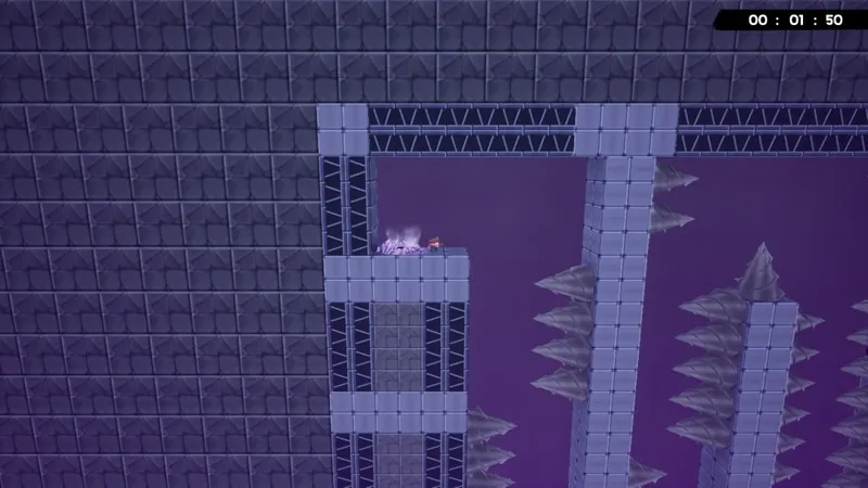 关卡的尾声部分对空中冲刺的时机要求更高。在尖刺排列尤为密集的狭窄通道,建议提前按下冲刺键,以确保角色有足够的空间进行微调,避免碰到致命的尖刺。
