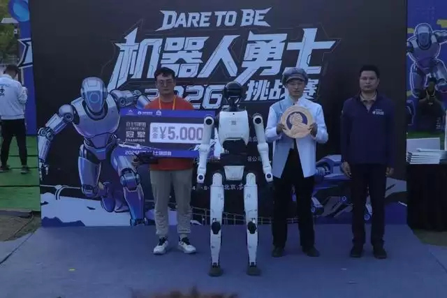 值得一提的是,来自济南的优宝特E15“悟行队”取得了四足机器人组别的亚军,是腿足类9个品牌中唯一获奖的小型四足机器人。而作为全场唯一的全尺寸参赛机器人,“具身天工3.0”的自重、重心和操控难度都远高于小型机器人,却能在与更灵活对手的同场竞技中胜出,这本身就颇具看点。