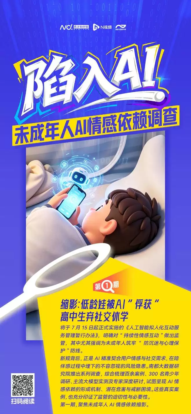 从今年7月15日开始,一项新规——《人工智能拟人化互动服务管理暂行办法》将正式落地。其中,“持续性情感互动”被明确纳入监管视野,而筑牢未成年人的“防沉迷与心理保护”防线,更是被摆在了突出位置。