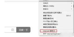 2. 从下拉菜单中,选择“Internet选项”。