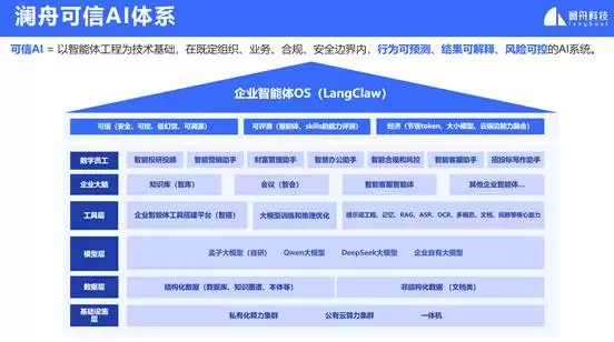 企业智能体OS(LangClaw): 作为数字员工的统一运行底座,支持自然语言转任务、跨系统操作、多数字员工协同、安全沙箱执行、全链路审计等核心能力,旨在实现效率、成本、组织与系统的四大价值重构。