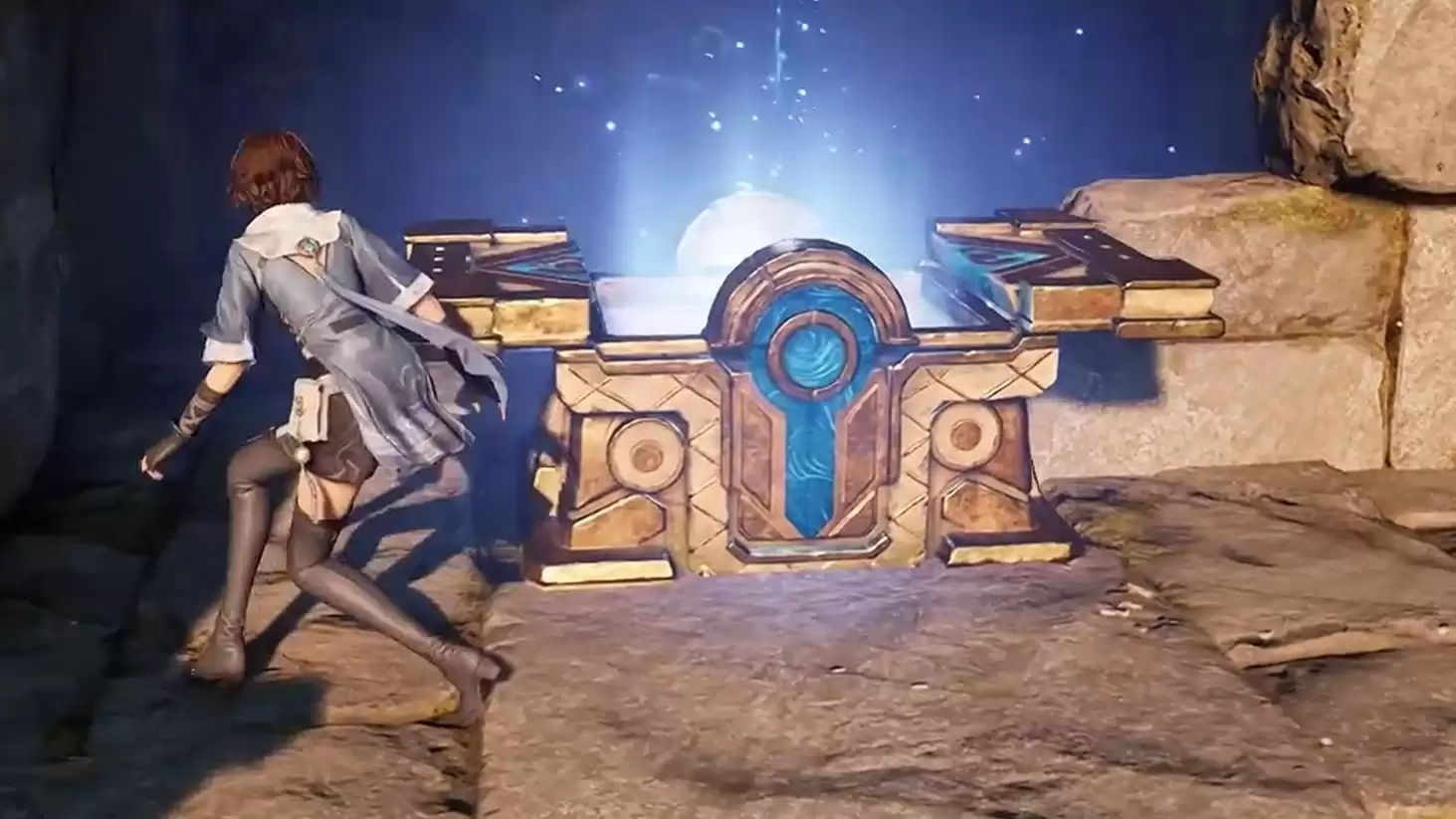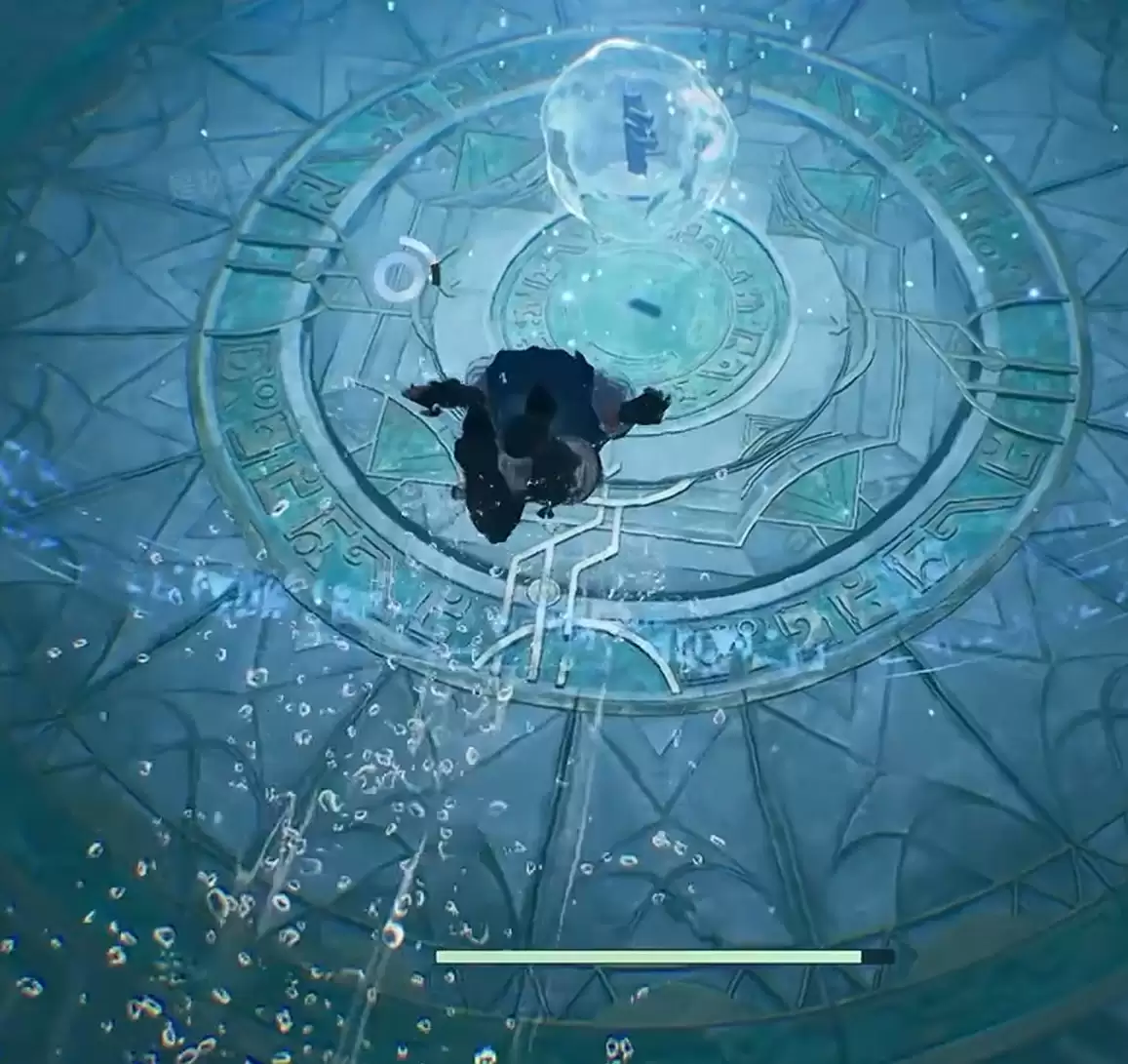 关键点提示:叠嶂符印并不在上述宝箱中。你需要继续向洞窟更深处探索,会发现一片可潜入的水域。毫不犹豫地跳入水中,进入水下场景。