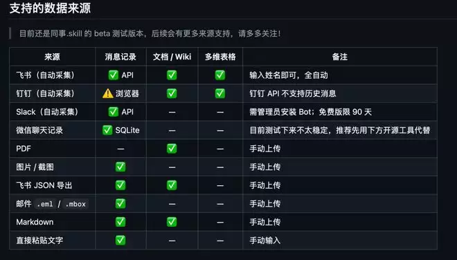 “同事.skill”正是在这样的语境中间出现的。它是一款基于Claude Code的AI Agent工具,操作逻辑并不复杂。用户提供同事的飞书消息、钉钉文档、工作邮件、聊天截图等职场材料,再辅以若干主观描述,投喂给大模型,便可能生成一个能够模仿该员工工作习惯、说话方式,甚至复刻其处事风格的AI分身。原本附着在具体个人身上的工作经验,到了这里,被进一步整理为一种可以由系统接续下去的东西。