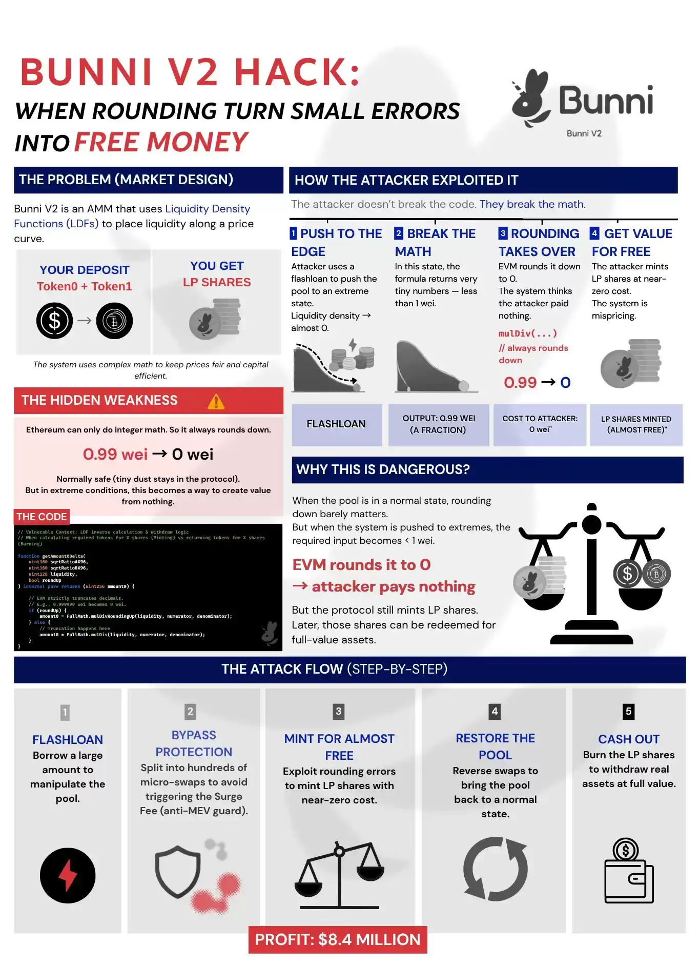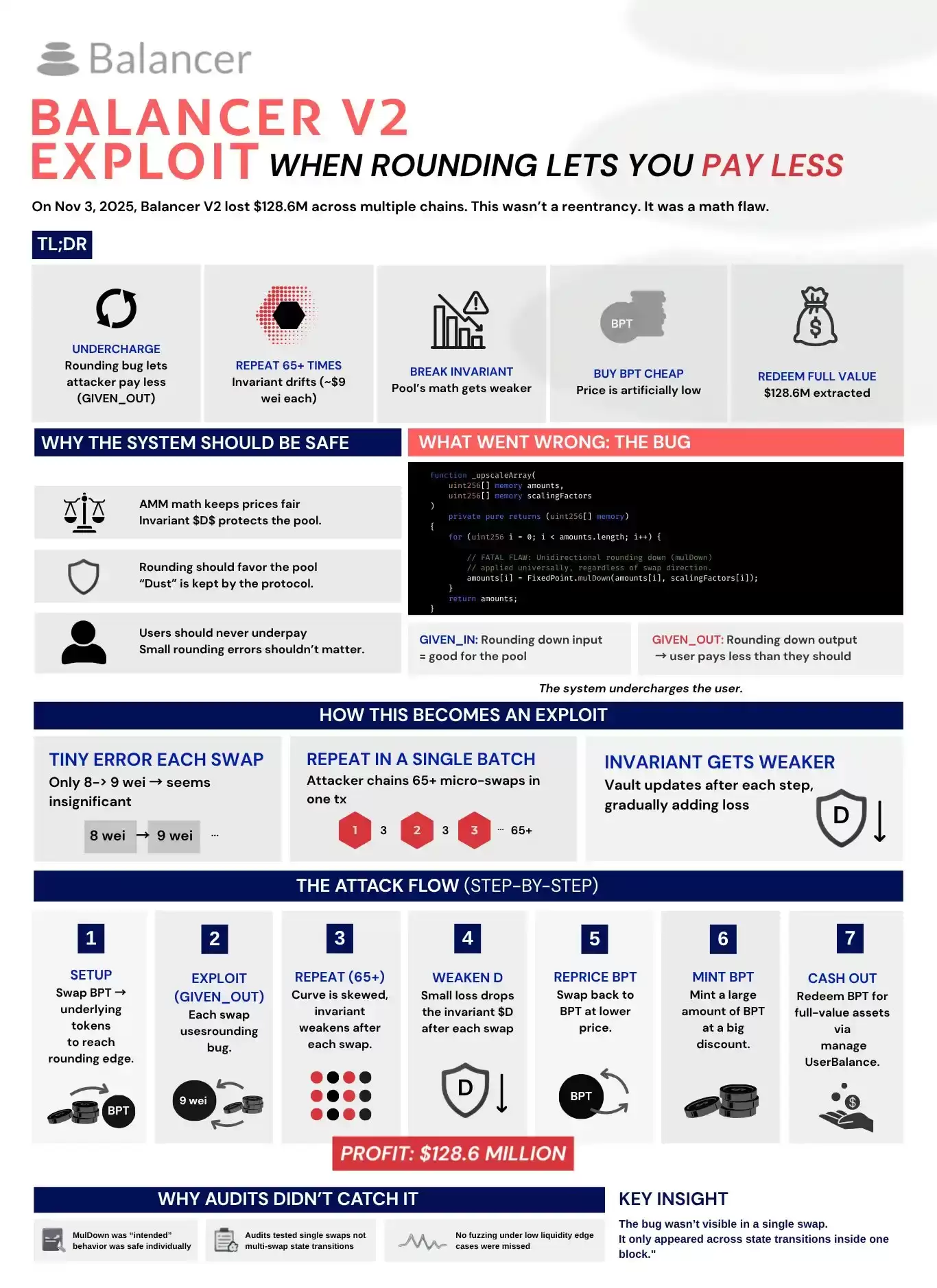 但问题在于,这个误差没有在每次交易后重置,而是持续累积。攻击者没有只利用一次,而是在一个流程中多次利用了它。