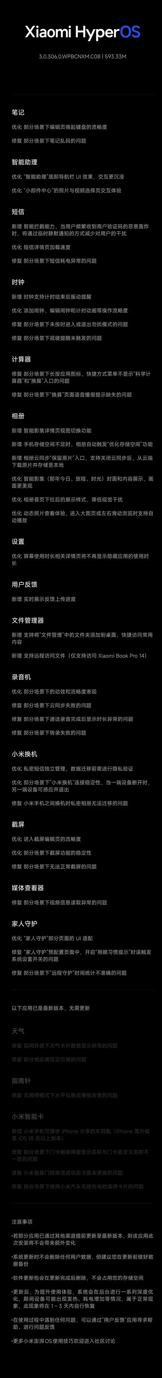 从官方公布的澎湃OS 3最新升级公告来看,这次更新的覆盖面相当广泛,涉及超级小爱、CarWith、文件管理等多个核心应用,堪称一次“地毯式”的体验优化。