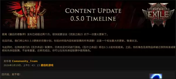 《流放之路2》官宣预告下一次0.5.0重大更新!四月底更新!