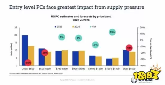 那么,具体会发生什么变化?Omdia给出了量化的预测:1300至1499美元价位段的PC销量将迎来显著增长。与之形成鲜明对比的是,500美元以下的入门级市场,销量可能面临高达35%的暴跌。这背后的逻辑很现实:内存价格飞涨,CPU与GPU持续短缺,迫使厂商不得不将有限的资源,聚焦在那些能维持健康毛利率的高附加值产品上。这意味着,像华硕、宏碁这样的主流品牌,很可能将无力继续深耕预算市场。对于期待高性价比设备的玩家而言,未来的选择空间,恐怕不容乐观。