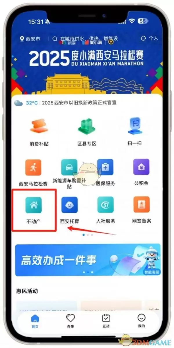 认证成功后,返回APP首页。您可以在首页常用服务或专题区域中找到【不动产】图标,点击即可进入西安市不动产集成服务专区。
