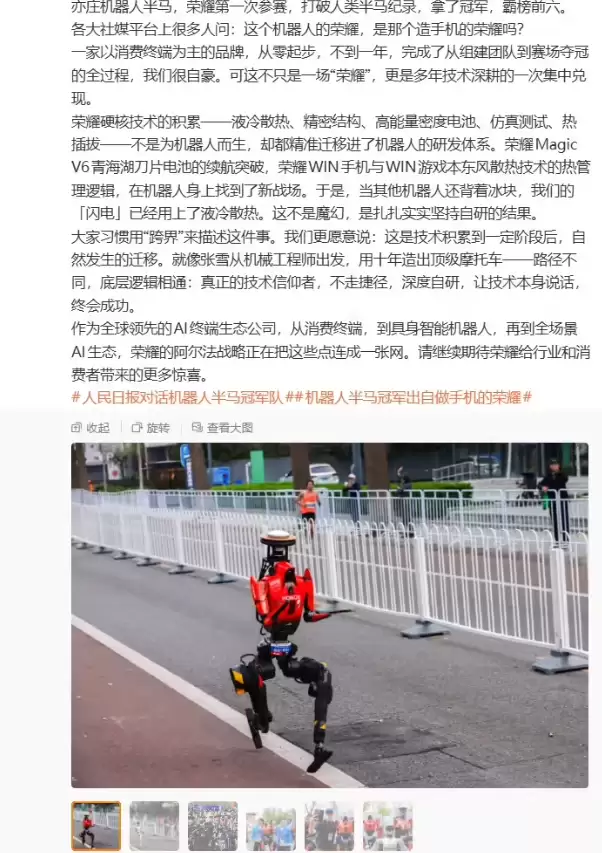 赛后,就连人民日报也发表了锐评:这场机器人马拉松可不是无意义的作秀,而是一场关于未来的“热身”。