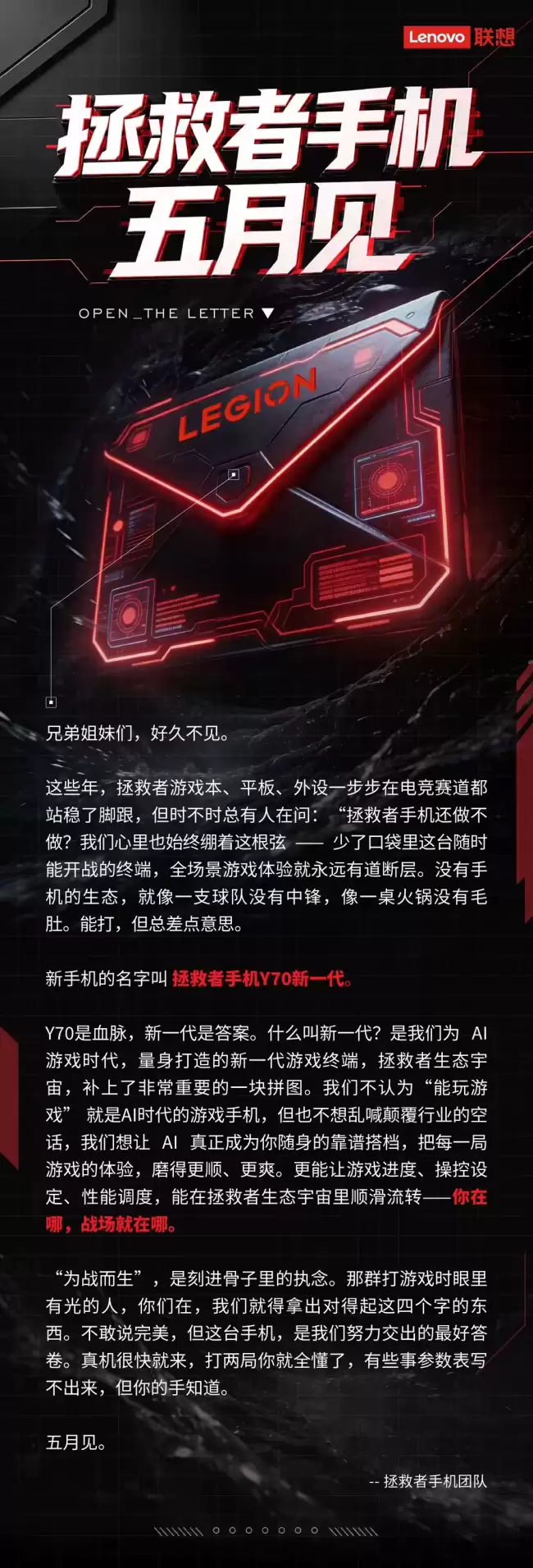 联想拯救者Y70新一代游戏手机官宣:5月19日发布,设计与质感全面进化