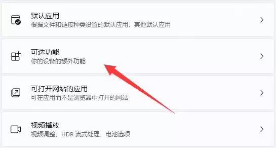 第四步:进入“应用”设置后,将目光移到窗口右上角,点击“可选功能”。这里管理着许多Windows内置但默认不安装的工具。
