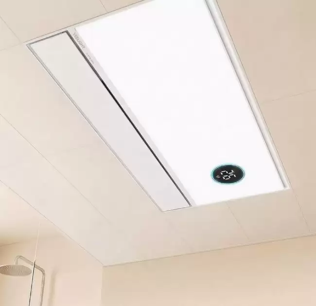 这款智能浴霸的核心亮点有哪些?首先从外观设计来看,它采用了超薄纯平的机身面板,造型简约时尚,能够轻松匹配多种现代浴室装修风格。在性能配置上,产品搭载了592mm超宽摆叶出风口,并内置双直流变频电机,配合3000W大功率石墨烯涂层PTC陶瓷发热模块。这一强劲组合不仅实现了高效的浴室取暖效果,其换气能力更达到200m³/h。官方数据显示,可在“2分钟内完成快速换气与除湿”,切实应对浴室潮湿、空气不流通等常见问题。