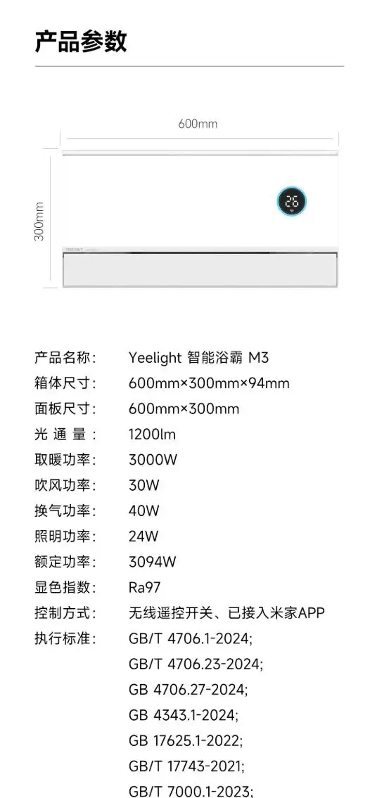 Yeelight 智能恒温浴霸 M3 开启众筹:换气效率达 200m³/h、接入小米米家 App 599 元