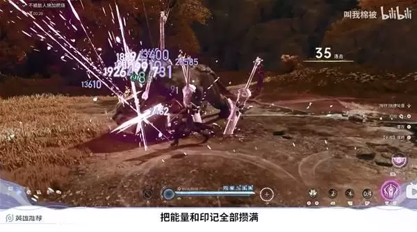 而在重剑形态下攻击敌人,又能积攒“印记”(右侧的花瓣标识)。当印记攒满后,长按一技能便会消耗所有印记,召唤数把从天而降的巨剑,对范围内敌人造成巨额AOE伤害,其震撼的视觉特效和强劲的实战反馈能带来十足的爽快感。