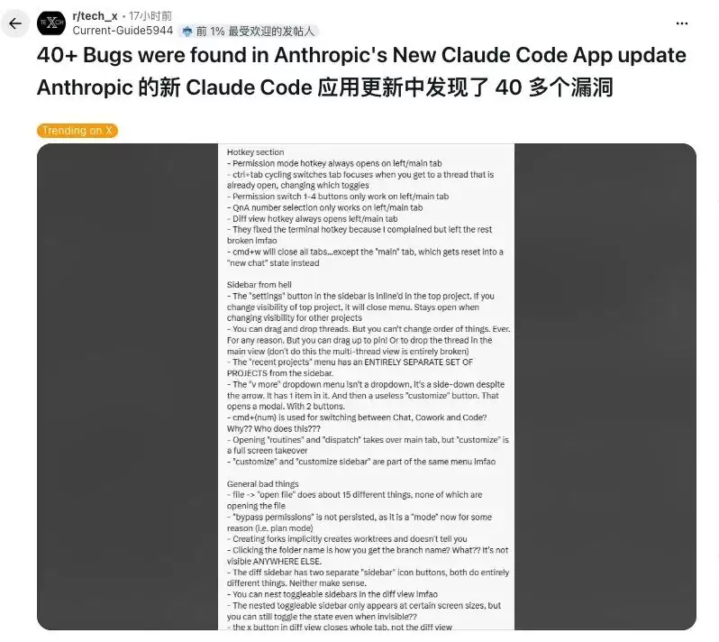 版本上线仅两天,开发者社区便涌现出大量密集的负面反馈。