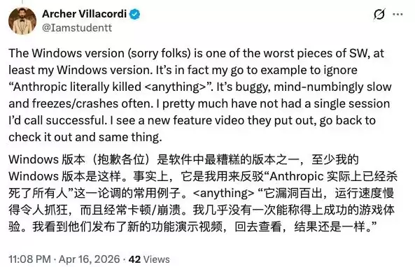 “当前的问题是,许多用户似乎已经接受了这种质量水平。”即便市场上存在大量更稳定、功能更完整、甚至开源免费的 AI 编程工具替代方案,用户仍然在使用 Claude Code,很大程度上只是因为它绑定了强大的底层模型。“他们并非在为这个界面付费,而是为背后的模型能力付费,但结果却不得不忍受这个糟糕的客户端体验。”