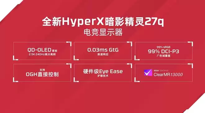 惠普发布HyperX暗影精灵27q OLED显示器:2.5K 240Hz QD-OLED面板登场