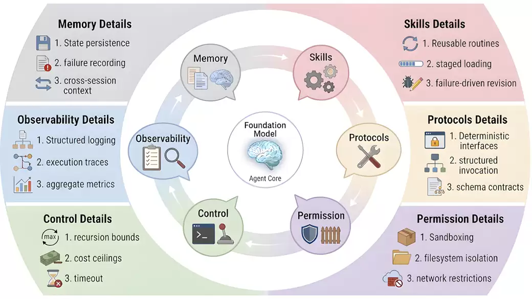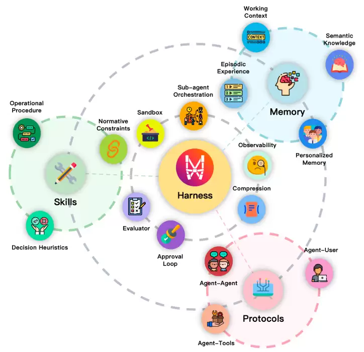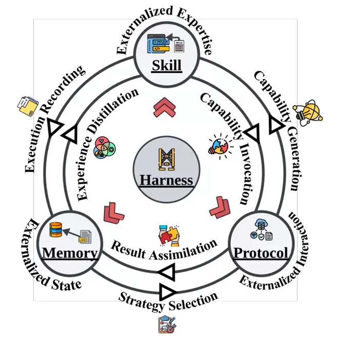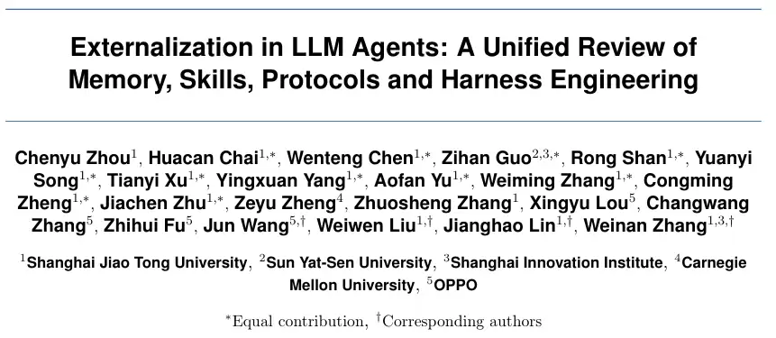 来自上海交通大学、中山大学、上海创新研究院、卡内基梅隆大学及OPPO的联合研究团队,近期深入剖析了智能体技术的演进脉络。他们的工作清晰地揭示,正是记忆、技能、协议与运行环境(Harness)这四大外部支柱,如何将模型脆弱的概率生成,重塑为稳定可靠的工程生产力。