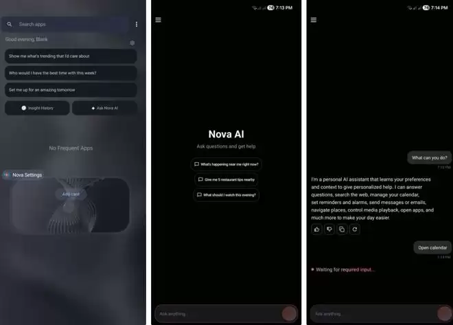 更值得玩味的是它的“主动服务”能力。Nova AI被设计为能够深度学习用户行为,从而提供预测和建议。比如,预测你接下来要打开哪个应用、智能提醒即将到来的日程、快速联系常用联系人,甚至根据你的位置推荐附近的去处。这就不只是问答,而是试图成为你的手机使用管家。