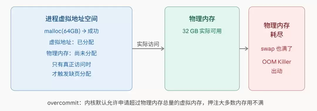 一、Linux 为什么会允许内存耗尽?先从 overcommit 说起