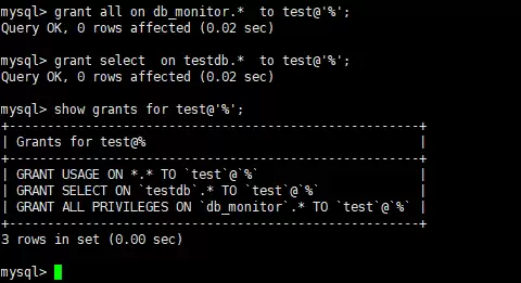 然后,为真正需要的‘test’@‘%’用户重新授予完整的权限。