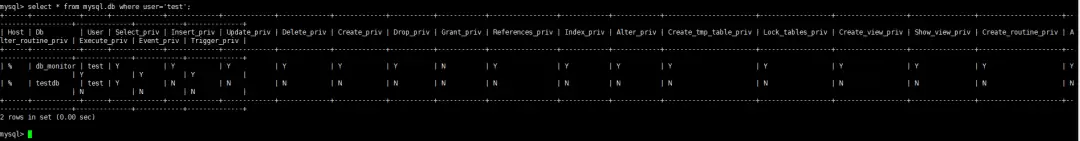 你只改了user表的host,但db表里对应的权限记录,关联的host可能还是旧的‘192.168.56.106’。即便执行了FLUSH PRIVILEGES,内存里加载出来的关联关系也是错位的。这就导致了那个诡异的现象:从新IP(192.168.56.108)登录的用户,在检查db表权限时,找不到匹配‘test’@‘%’的记录,所以没有任何库权限。