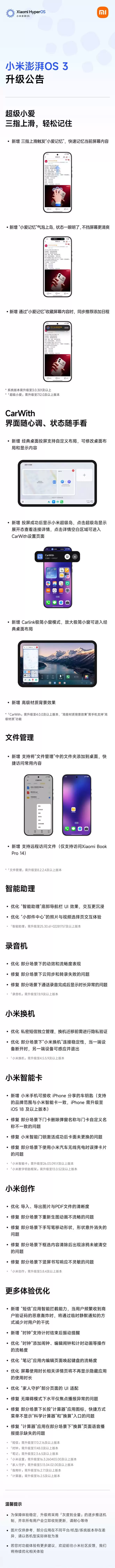 小米澎湃OS 3超级小爱、CarWith、文件管理等海量功能升级
