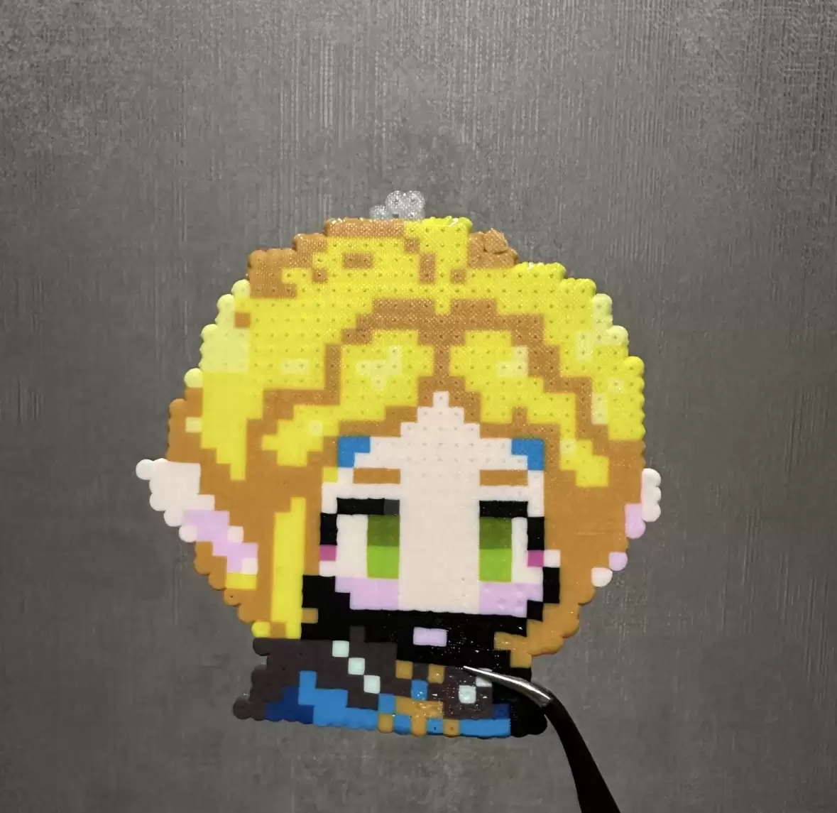 接下来的三个小时,她的世界被一张像素图纸和一块钉板占据。用镊子将一颗颗直径仅5毫米的塑料珠,精准地码放在对应位置。当《塞尔达传说》的主角林克逐渐显形,最后的工序是用熨斗一烫——珠子熔合,一个独一无二的背包挂件就此诞生。
