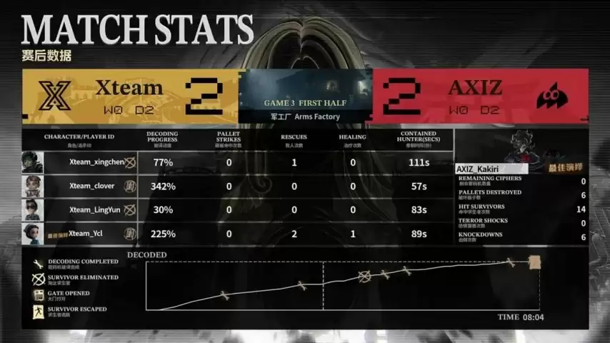 第二局比赛上半轮:Xteam求生者对阵AXIZ监管者