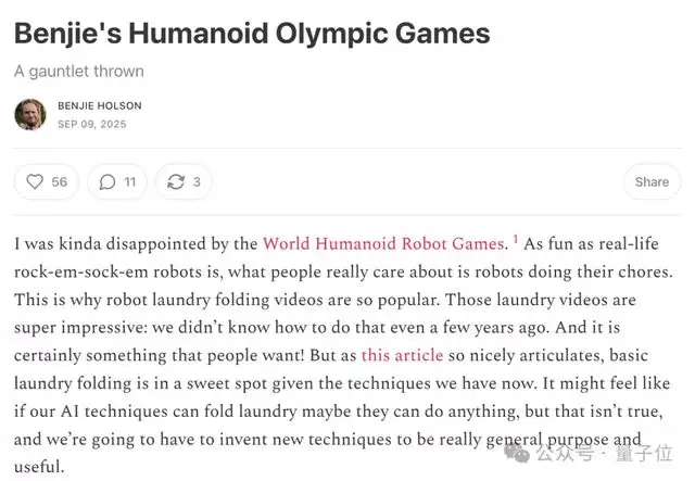 与那些流程繁琐、包装华丽的正式机器人大赛不同,Benjie’s Olympics以其纯粹到极致的实操能力对决,吸引了全球顶尖具身智能公司的目光。《科学美国人》杂志对其评价可谓一针见血,称其为“物理智能的终极真实压力测试”: