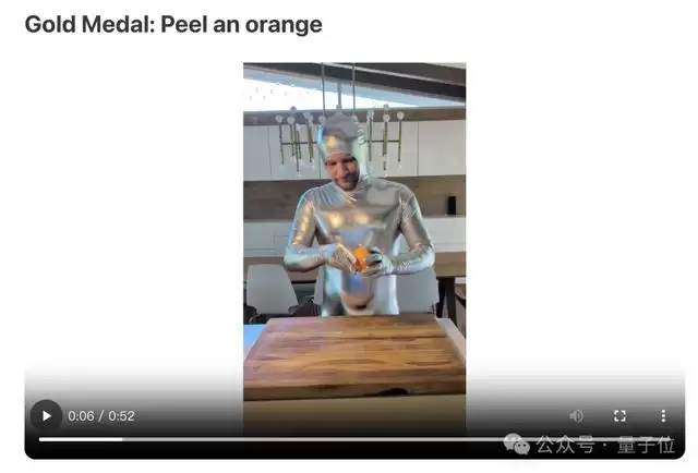 在奖牌等级的设置上,Benjie’s Olympics自有一套逻辑。例如在“洗衣”大类中:“将T恤衫里外翻转并折叠”是铜牌难度;“把袜子翻过来”是银牌难度;而“挂好一件男士衬衫”则能达到金牌难度。再比如对“指尖”灵巧度的考验:“卷起一双配对的袜子”是铜牌;“使用狗粪袋捡起便便”是银牌;“徒手剥开一个橙子”则是金牌。