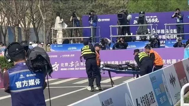 原标题:《宇树H1机器人半马赛场终点“累倒”,现场视频:工作人员紧急用担架将其抬离》