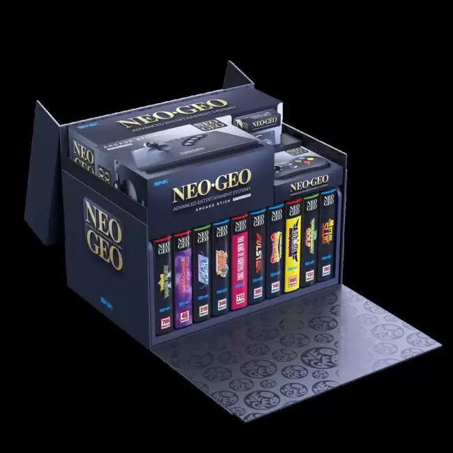 而对于终极收藏家,SNK还准备了限量终极版。这个版本包含黑色主机、全部10款首发游戏卡带、有线及无线摇杆、无线手柄、记忆卡以及游戏收纳架等,售价高达150,000日元 / 999.99美元。