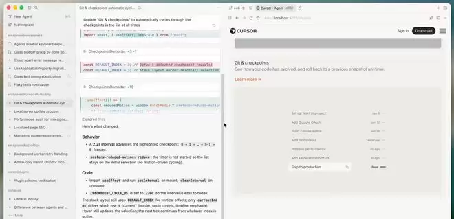 首先,它优化了Agent在不同环境间切换的速度,用户可以将Agent会话在云端和本地之间快速迁移,保证了工作的连续性。其次,它支持并排或网格式浏览,允许开发者同时查看多个会话的进展。再者,新增的“设计模式”堪称一大亮点,用户可以直接在浏览器中框选特定的UI元素,然后交由Agent直接修改。最后,一个名为“/best-of-n”的命令也颇为实用,它能将同一个任务分发给多个模型同时执行,最终让用户选择最优结果。