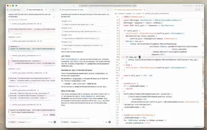 尽管主打“Agent先行”的交互理念,但Cursor 3深知其作为一款集成开发环境的根本。因此,它依然完整保留了广受用户喜爱的IDE页面,并在原有基础上进行了三个关键方向的升级: