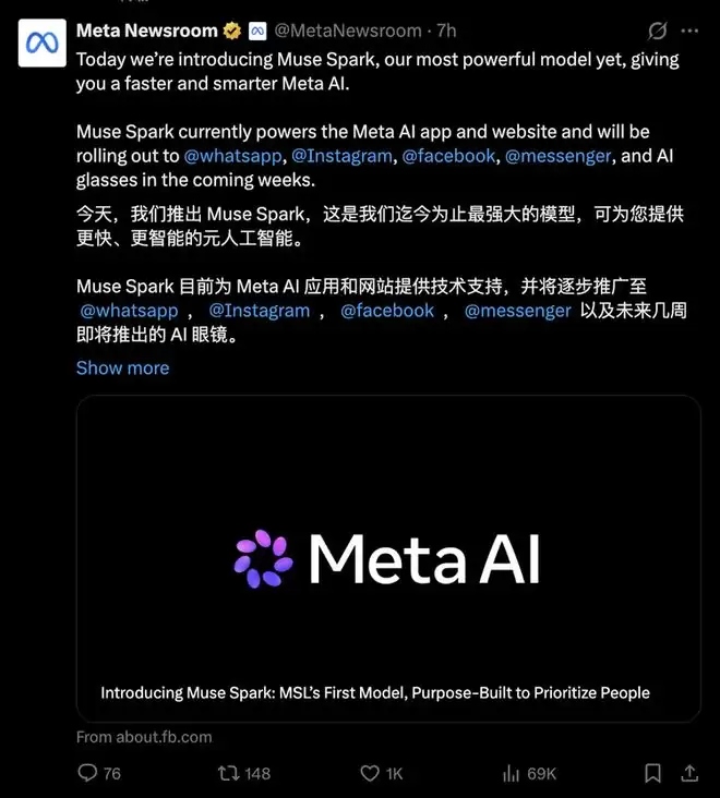 Meta AI“推倒重来”:华人天团交出首份答卷Muse Spark,但更大的战争才刚刚开始
