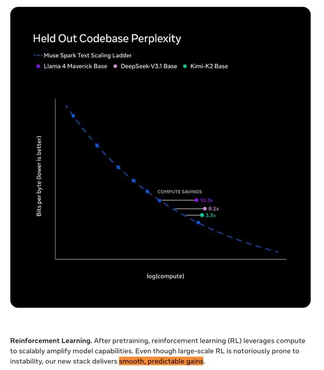 九个月前,扎克伯格交给他们的是一张白纸。如今他们交出的,不仅仅是一个模型,更是一套涵盖了预训练、强化学习、测试时推理的完整技术栈。而最关键的是,这套技术栈的扩展曲线被证明是平滑且可预测的。