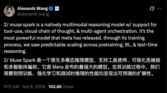 模型发布当日,MSL团队成员几乎集体在社交平台X上发声,透露了几个关键信息。