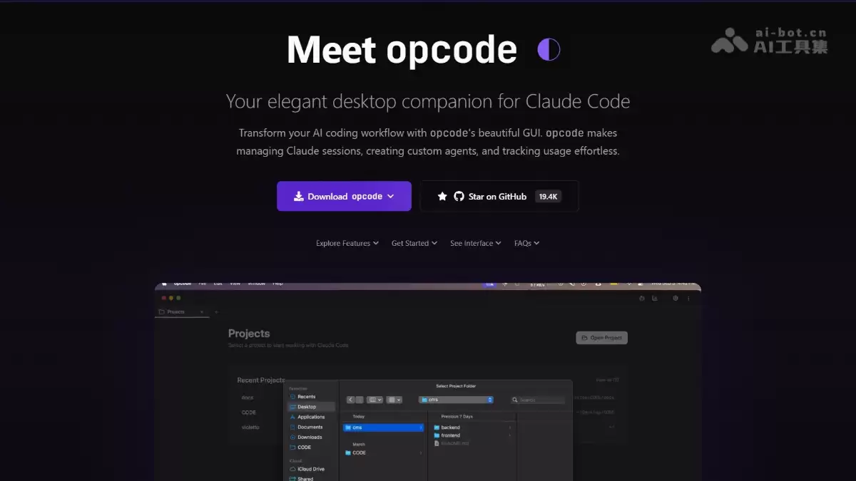 - 项目官网:https://opcode.sh/ —— 这里提供了最直观的项目介绍和入口。