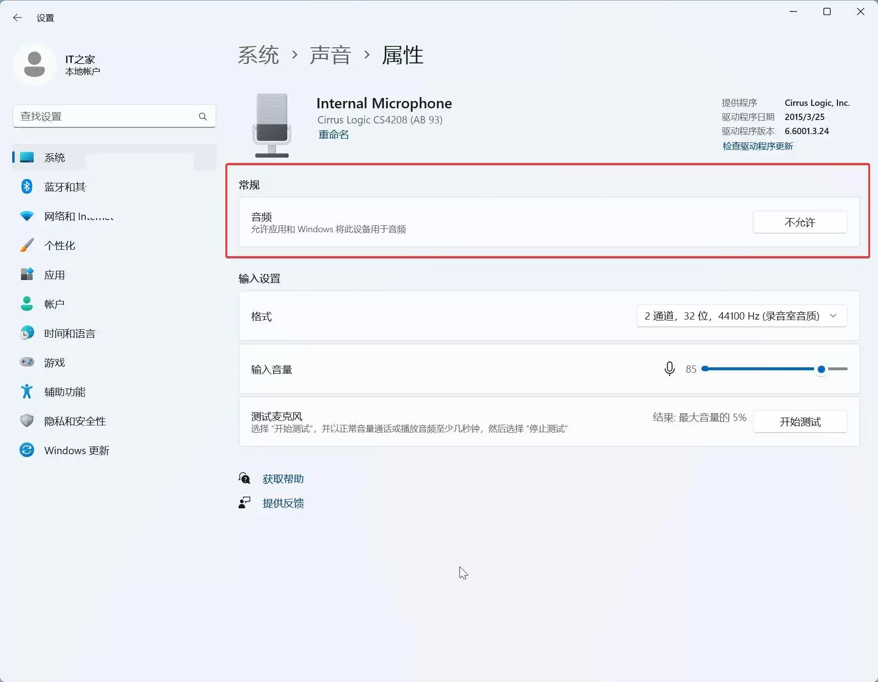 Win11怎么禁用麦克风