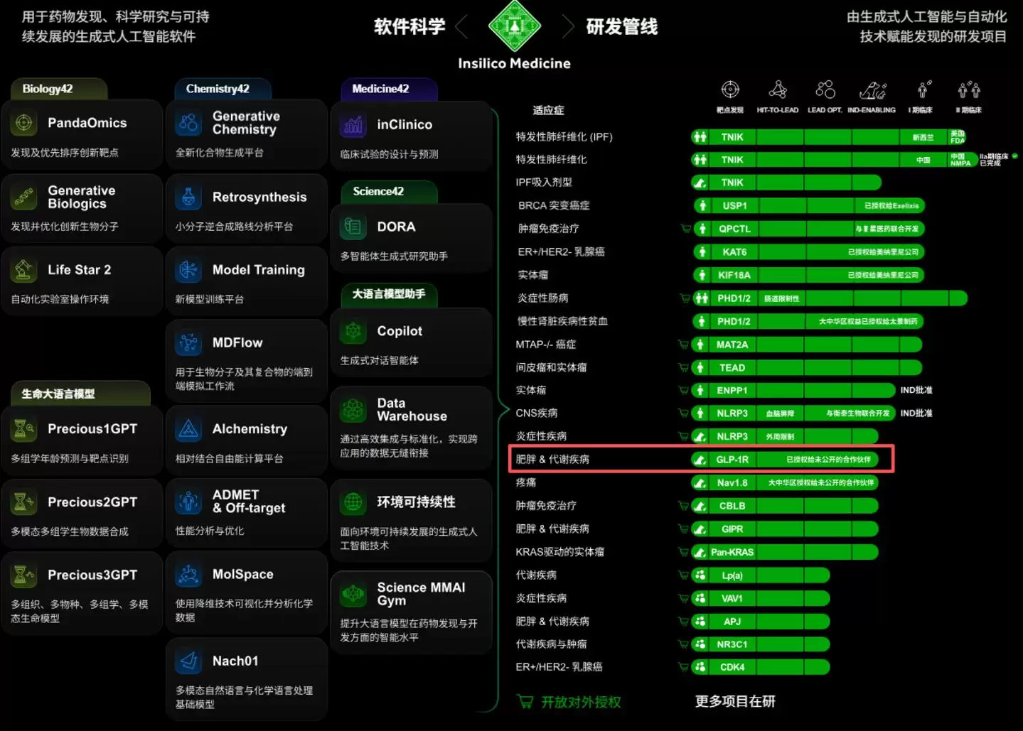 在英矽智能的正式管线图中,一条处于临床前候选化合物(PCC)阶段、并将全球权益授权给“未披露合作伙伴”的管线,被明确标注为:靶向GLP-1R,用于代谢类疾病治疗。