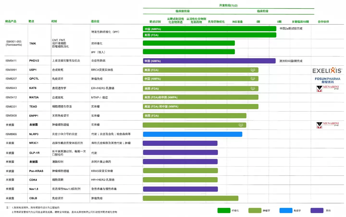 公开信息显示,在英矽智能过往的对外授权管线中,授权给Exelixis的USP1管线、授权给Menarini的KIF18A和KAT6管线,均成功从临床前PCC阶段推进至临床试验阶段,至少达成了2个里程碑,包括预IND(新药临床试验申请)的达成以及I期临床项目的里程碑。