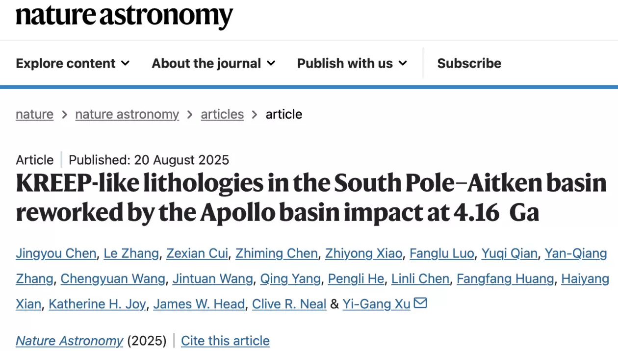 月球表面那些触目惊心的巨型盆地,就像一张记录古老灾难的年表。最近,《自然-天文学》上的一则消息,为解读这张年表提供了一个至关重要的新刻度。中国科学院院士徐义刚领衔的联合团队,凭借对嫦娥六号月壤样品的高精度年代学分析,首次将月球阿波罗盆地的形成时间,精确锁定在了41.6亿年前。这项发现可不简单,它为我们理解太阳系早期那段被称为“晚期重轰炸”的动荡历史,投下了一束关键之光。