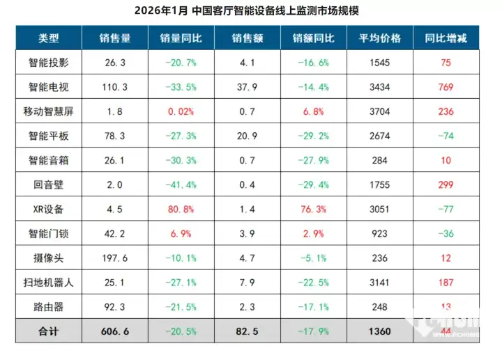 2026年开年市场遇冷:客厅智能设备线上销量下滑超两成