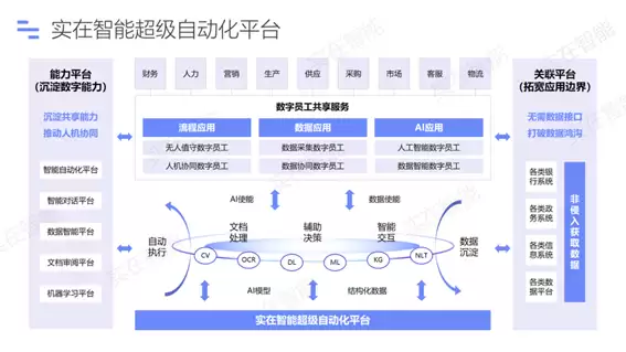 随着数字化技术的日益成熟,数字员工已从概念走向普及,广泛应用于金融、能源、制造等众多行业。实在智能紧抓这一趋势,不断拓展技术边界,构建起一个涵盖智能文档处理、商业智能、对话智能、决策智能、流程挖掘等领域的全自研AI+RPA产品矩阵,形成了强大的超级自动化平台。