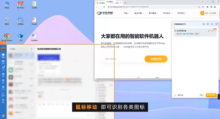 秘诀在于,整个屏幕、整个界面都处于自动化能力的覆盖之下。你的每一个操作,系统都在后台进行极速智能识别。当鼠标悬停在某个可操作区域时,实在IPA模式会自动推荐此处可能实现的自动化操作。而每一次鼠标点击,都会被自动转化为自动化流程中的一个步骤。