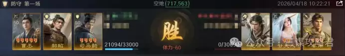 战报总结:一系列实战数据清晰地表明,郝昭的加入,堪称司马懿阵容的一次“生存革命”。其提供的巨额抵御效果,在面对那些讲究“一击必杀”的低频高伤队伍时,构成了近乎完美的克制。司马懿的生存与输出环境因此得到质的飞跃。然而,这套体系的软肋同样明显:它非常惧怕如姜维“九伐中原”这类能在回合结束时破除抵御的高频攻击。一旦司马懿身上的抵御被提前清除,加之其本身先攻速度不占优,就极易在下一回合遭遇重创,兵力骤减。