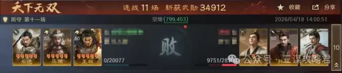 战报总结:王双在战场上的定位非常明确——兵刃输出队的噩梦。其强大的“锁头”能力,能轻松精准消灭敌方核心输出位,从而快速终结战斗,效率极高。但成也萧何,败也萧何。当面对以陆逊为代表的谋略队时,王双的机制就容易陷入尴尬。例如,若其锁定的目标是孙权而非陆逊本身,战斗就会被拖入陆抗的虚弱保护期。结果就是,王双无法及时解决真正的威胁(陆逊),反而在消耗中被对手的谋略火力拖垮、击败。