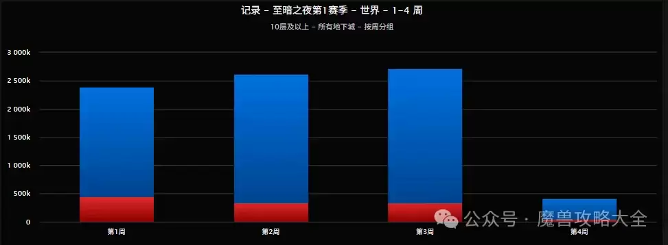 在《至暗之夜》第一赛季,大秘境的整体数据表现其实相当亮眼。全球多个大区的关键指标,包括大秘境运行总次数、通关率、10层以上通关率以及3000分玩家人数,都实现了大幅提升。