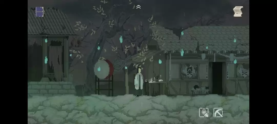离开茶水摊,路上会有蜘蛛挡道。这时候,刚做好的“火药”和“火折子”就是绝配,用它俩清理掉障碍。